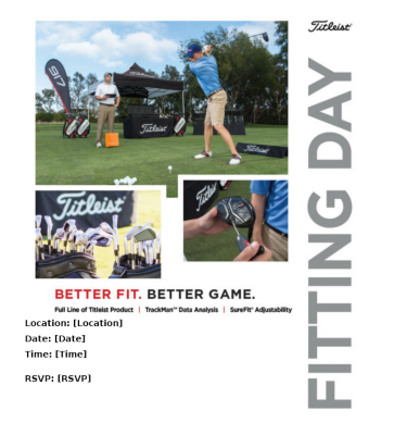 Please complete the form below to create a customized email (sample below) to send to golfers to help promote your upcoming Titleist Golf Club Fitting Day. After completing and submitting the form, an image will be generated. You can then copy and paste the image into an email to send to your golfer database.