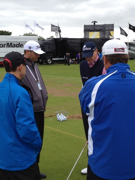 Steve Stricker sorts out his best options for a prototype Titleist 913 driver after cracking the face of his Titleist 909D3 in practice
