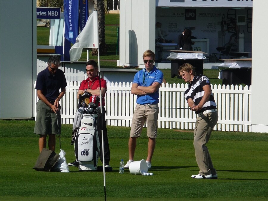 Potuguese Master and Titleist Pro V1x loyalist Tom is watched by Team Lewis