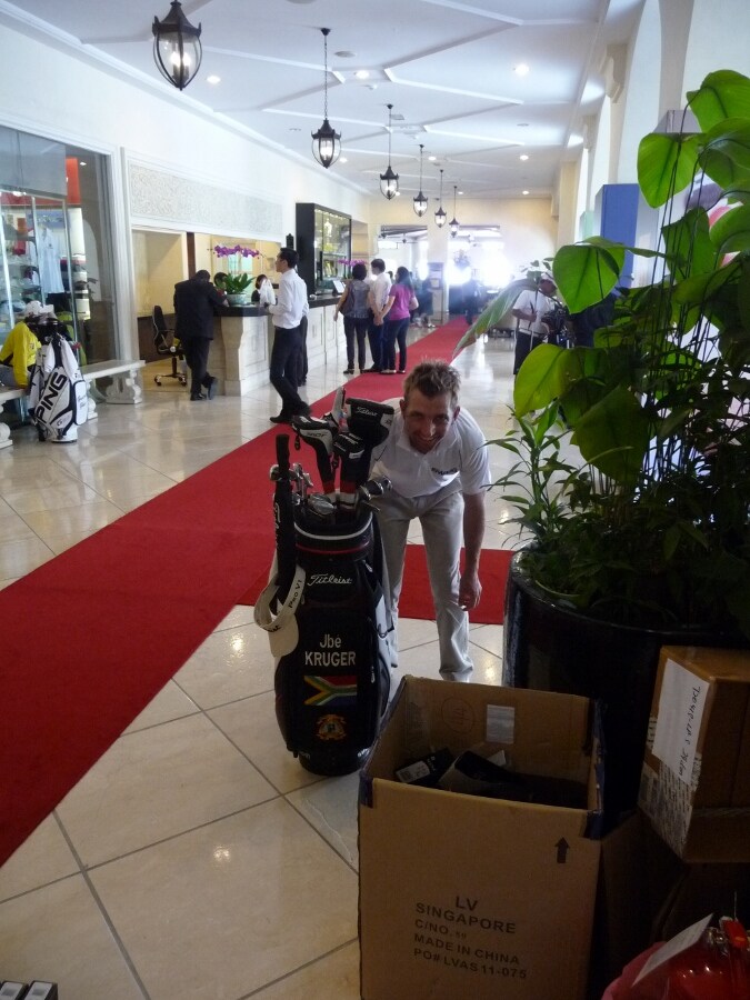 A camera shy Titleist staffer, Jbe Kruger, before the hard work starts on the range