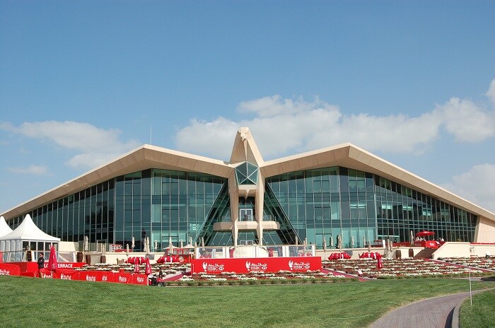 The iconic clubhouse at the Abu Dhabi Golf Club