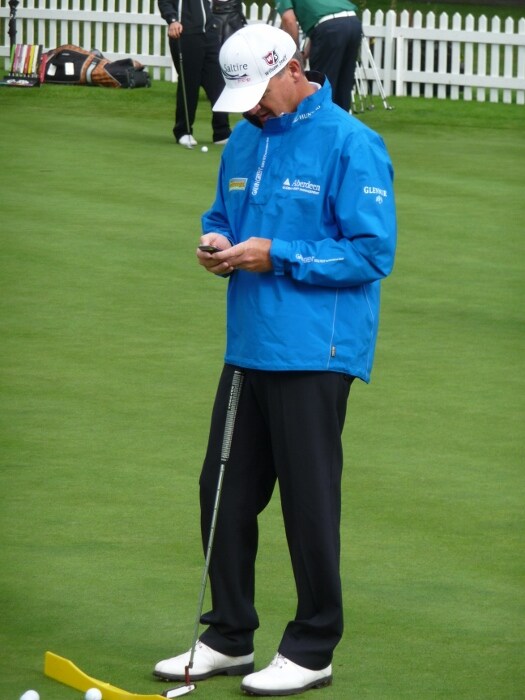 Local favourite and Pro V1x loyalist, Paul Lawrie, catches up on some text messages. Paul will be making his second Ryder Cup appearance next month.