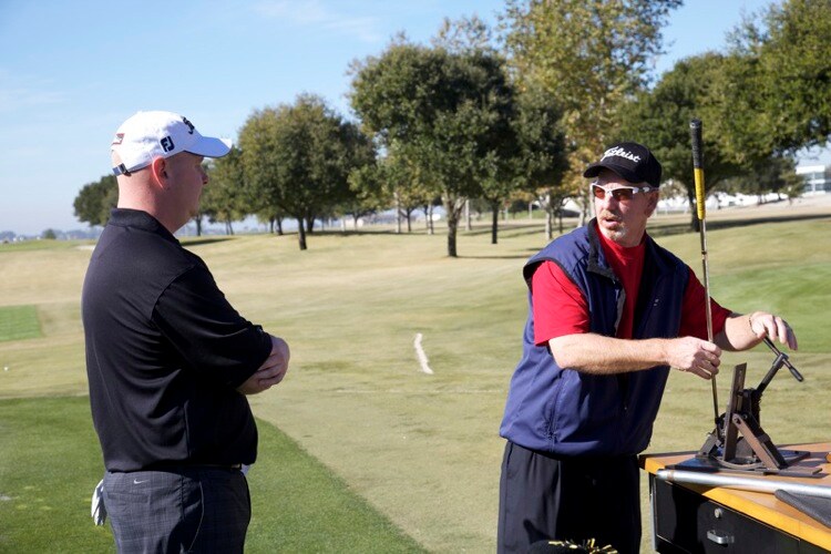 Kurt uses the bending fixture to help dial-in Lucus' specs.