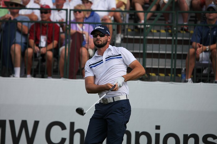 A little body english from Kyle Stanley to help shape his Pro V1x.