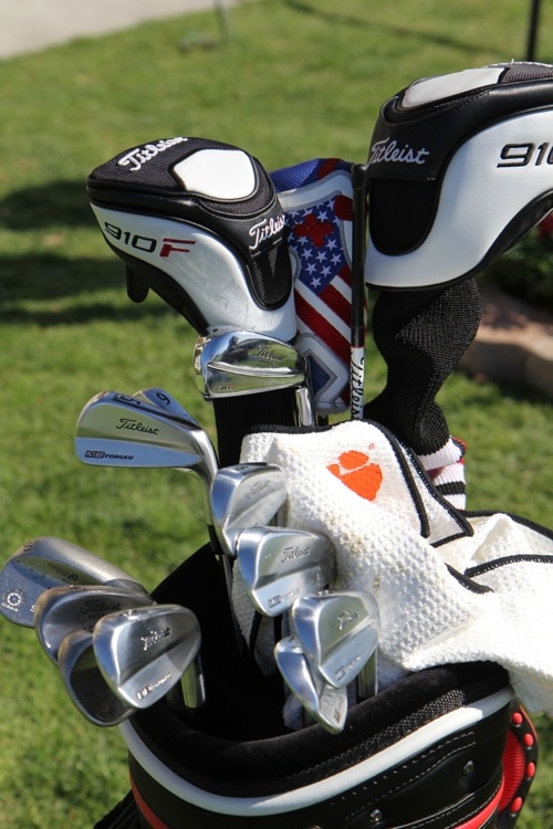 Guess who this Titleist bag belongs to? (Hint: Notice the orange Clemson logo.)