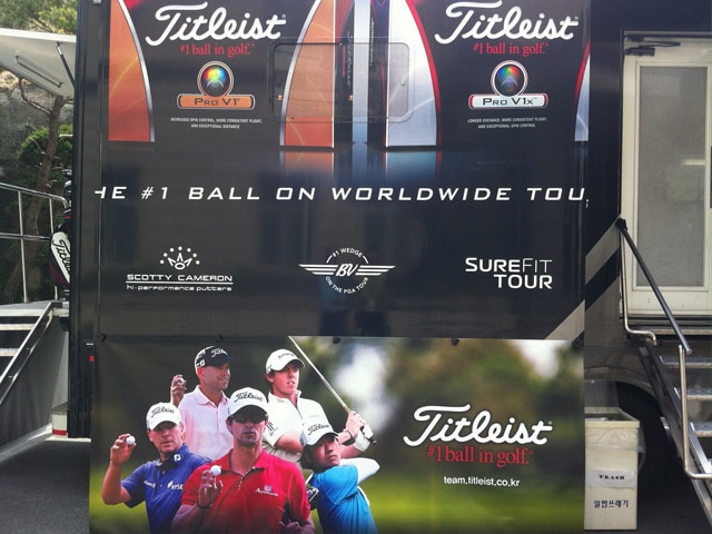 A look at the outside of the Tour Van. Its not hard to spot that its the Titleist Tour Van from a distance.