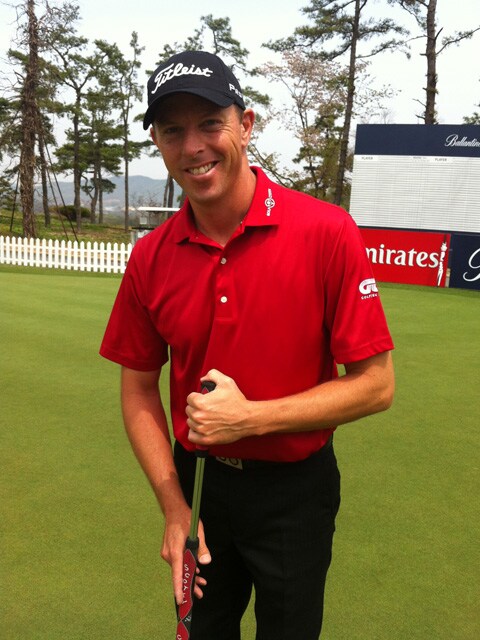 Soren Hansen getting some practice in on the putting green. A lot of pro's seem to be favouring the long putters these days.