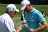 Vokey Tour Rep Aaron Dill with a special delivery for Titleist Brand Ambassador Charley Hoffman.