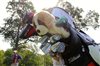The many, shiny faces of Scotty Cameron greet players on the practice green.