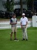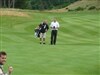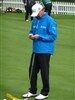 Pro V1x loyalist Anders Hansen chats to his caddie on the putting green.....