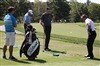 Here, Titleist Brand Ambassador Geoff Ogilvy makes good use of the practice tee to sharpen his iron play.