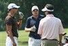 Titleist Tour Rep Jim Curran (right) checks in with Titleist Brand Ambassador Aaron Price.