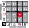The standard setting for left-handed players is D•4 (shown in red on the chart).