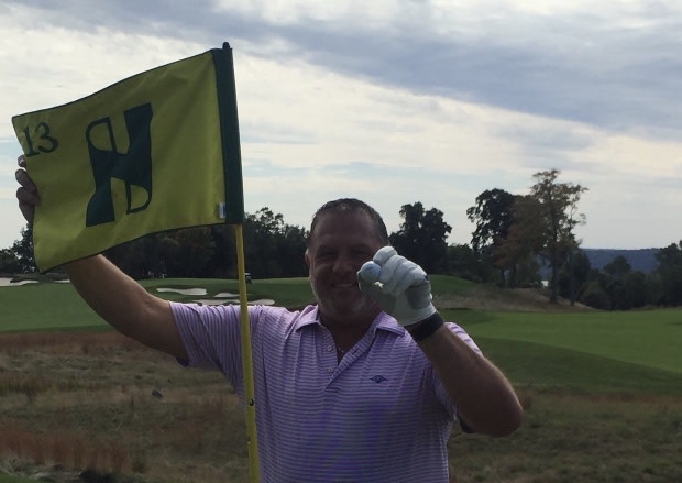 Par 3 - 13th Hole at Hudson National - 164 yards with a slight breeze at us. The ball faded in landed close to the pin - hit the stick and dropped in. I was a guest of my friend, Rob F. When we saw the ball disappear, our 3some and 2 caddies went crazy. The is my 2nd Hole-In-One. the last one came in 2008.