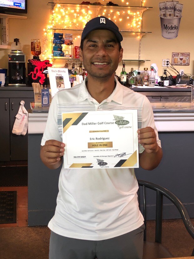 Today I got my first ever hole-in-one at Dad Miller Golf Course. I used my Gap Wedge on the 11th hole which was at 100 yds. Today was also the day I shot 79! My goal was to break 80 before the end of this summer. I got a double whammy! Dad Miller Golf Course was where Tiger Woods used to play as a child!