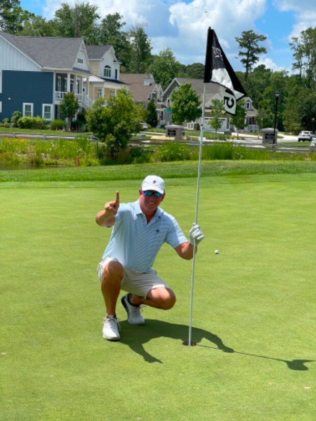 Using a 2021 ProV1 #5 use a 6 iron from 176 I had my 1st hole in one on # 15 at Bayside Resort in Delaware. It’s a Jack Nicklaus signature course. I actually live on the 10th hole which looks over the Ocean City skyline. #15 is the most difficult Par 3 from the back tees as the green is surrounded on 3 sides by water and the wind is always blowing hard!