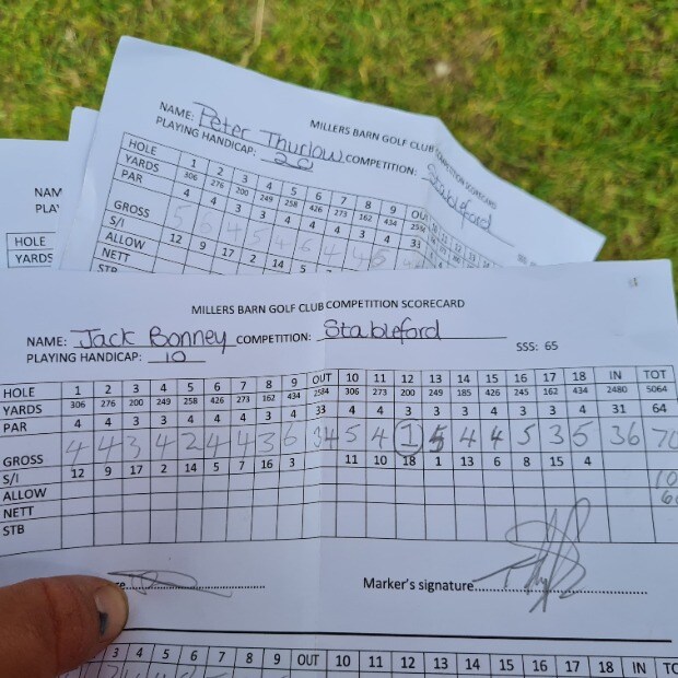 1. It was the 29/05/22. A Stableford competition, having finished the front 9 equal to my best ever scoring round, nearly capturing my first ever 'ace' I was eager to get onto the back and go again. I then reached the 12th hole, jokingly saying to family and friends ' I'm going to punch this 6iron with a baby draw, soft bounce and then onto the pin'. Little did I know I'd do exactly that, surrounded by friends and family, the ball seemed to take an eternity to reach the hole. 20mph wind against me, 200 yards, I watched and waited in anticipation for the ball to finish. And then to see my friends and my brother of all people (it was his birthday on the day) celebrate and then record the ball from the back of the green. So I knew it had dropped and from there it was pure elation. My first ever hole-in-one and for it to be at a small club which doesn't have many amenities it was special. And most of all on my brothers birthday and for him to have been there made it even greater.