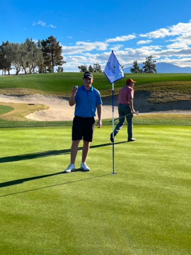 My son Easton Hopkins, 17, sank his second shot from 215 yards out at the par 5, 18th hole at the Classic Club in Palm Desert California. December 4, 2022