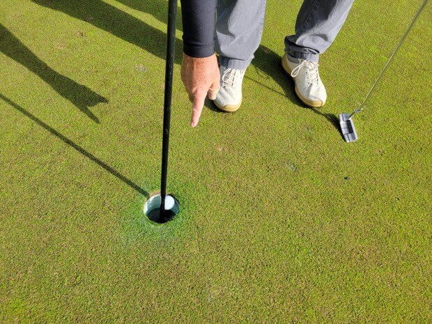 I was playing with my “ Myrtle Beach Shipley Group” and hitting a Titleist ProV1 ball with an Epic Star PW. As soon as I struck the ball, amazingly ,my friend Dave said” that’s in the hole”. Sure enough, when we arrived at the green the Pro V1 #4 was in the hole. The ball landed about 1 foot in front of the the hole and rolled in.