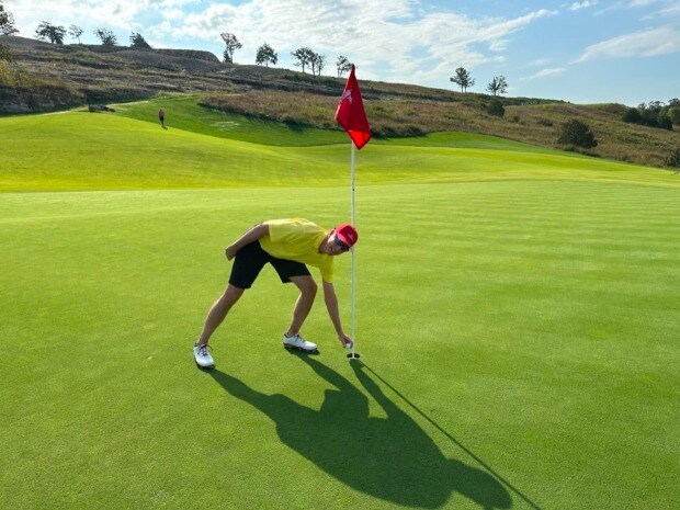 I was on an annual trip to Big Cedar in Branson, MO with 23 other guys. This is the 8th year for the Marriage Minute Ministries Men's Golf Retreat and my third year to attend. It was a beautiful and cool morning and guys from our MMM group were on the green above #2 tee box, on the #1 tee and fairway on top of the ridge above #2 and on the #3 tee box beyond the #2 green. As we prepared to tee off, two of the younger guys in our foursome, Colton French and Austin Calley, were talking about the ridge down the middle of the green and how we need to stay left of the ridge as the pin was back left. I chuckled and said, "Guys, Todd (Reynolds) and I just want to get on the green." After Colton hit first and hit the green but well short of the flag, he said he had hit his 4 iron towards the toe. I hit next and flushed my 4 iron with a subtle draw that clearly was on a good line then landed just left of the ridge and started rolling for the pin, so we knew it would be a good shot. As the ball continued to roll, the comments were coming about just how close it would be and then the suggestion it may go in. "Go, go, go!" Then the Titleist Pro V1, disappeared into the cup. I was still holding my follow through pose, enjoying the shot, but when the ball disappeared, I did not believe it at first and just stared in shock of the possibility. I finally believed it had happened and dropped my club as I turned to my foursome of three men I truly appreciate and love as brothers. Their expressions of absolute excitement confirmed the ace! Of course the yelling and screaming, the high fives and fist bumps, hugs and even being lifted into the air by Austin created quite a scene with noises of celebration echoing through Payne's Valley. To be celebrated by so many great men who appreciated the feat and and poured out their congratulations both immediately and after the round and experiencing my first ace on such a beautiful and challenging golf hole was beyond what I could ever have imagined for my first (if ever) hole in one. It was not until I retrieved the ball from the hole that I realized it was a number 1 on the Pro V1. Perfect!