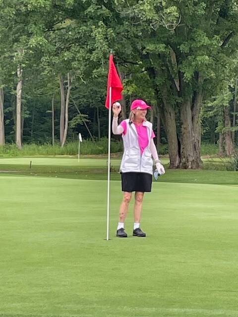 On August 2, 2024 I was playing in the first day of an Invitational. On the par 3 7th hole at Clifton Springs Golf Club in Clifton Springs, New York, while it was drizzling, I stepped up to the tee using a hybrid for a shot around 124 yards. When my ball hit the downslope of the sandtrap in front of the green, it bounced once and disappeared going directly towards the flag stick. We all looked at one another thinking the ball could be in the hole. When we approached the green and I looked in the hole, viola, there was my golf ball. My first hole-in-one!