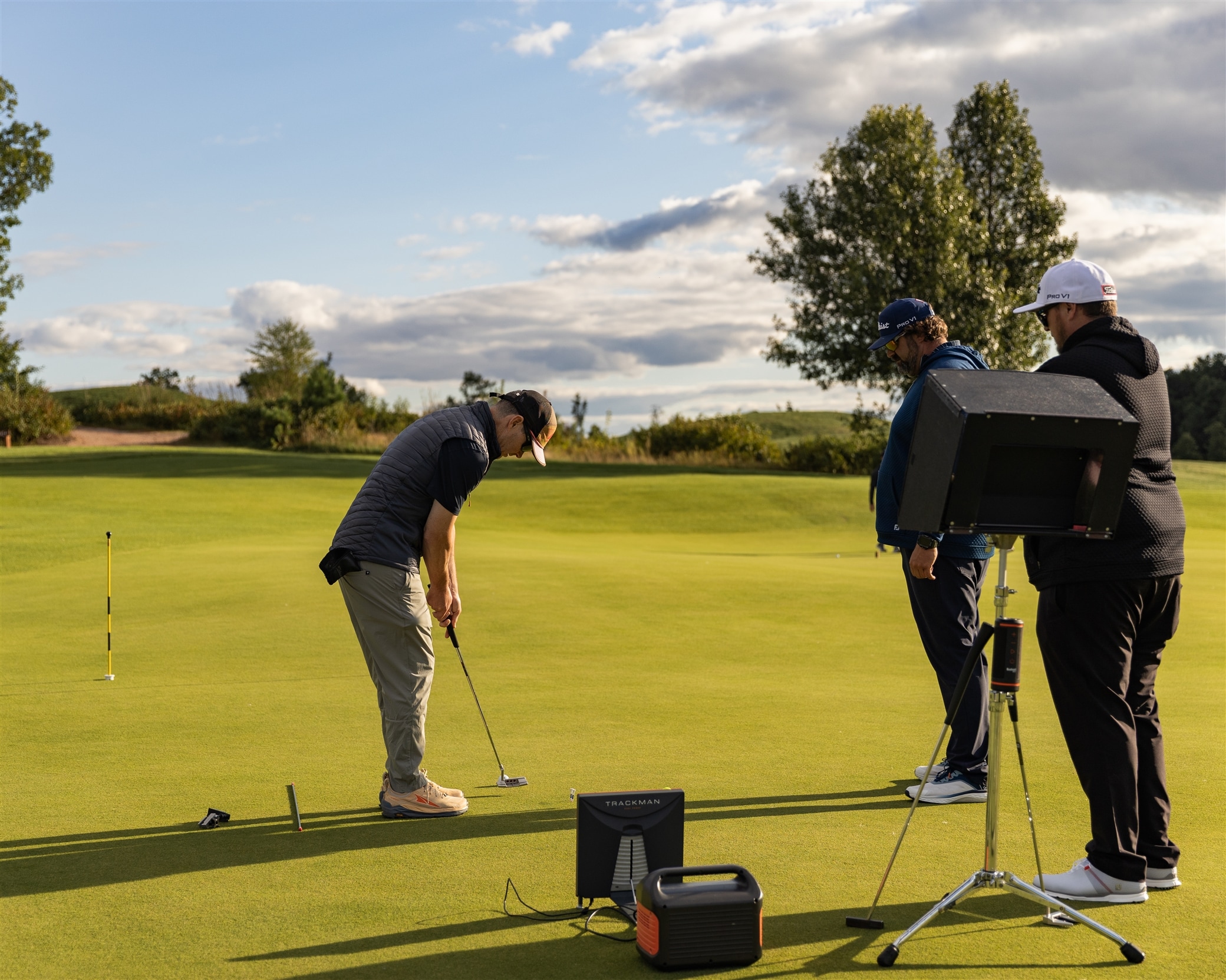 Balancing a hefty bag full of Titleist goodies, guests wobbled their way straight into a Scotty Cameron putting experience on Sedge Valley’s 24,000 sq. ft. putting green. The backdrop was unreal: perfectly manicured grass tennis courts, Midwest fall foliage, and a golden sunset all hitting just right.
