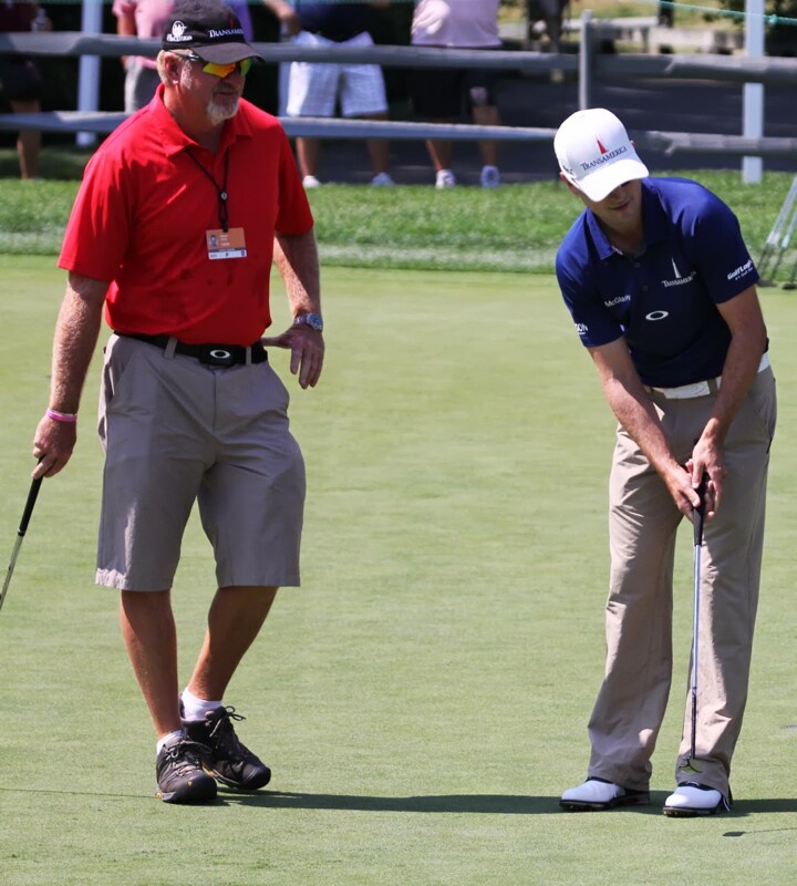 Titleist Brand Ambassador Zach Johnson gets a feel for the greens before a practice round.